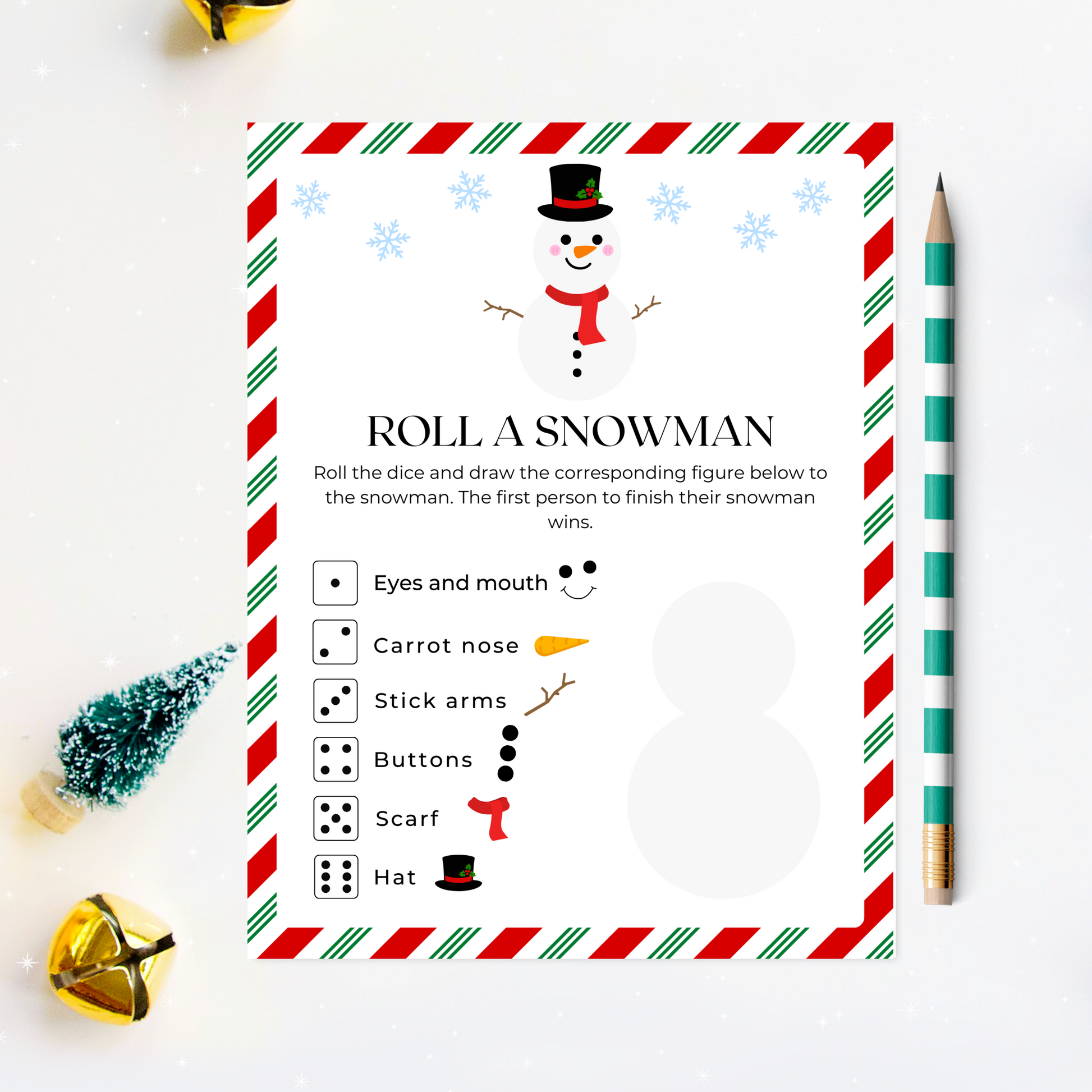 Roll A Snowman Dice Game - Digital Download