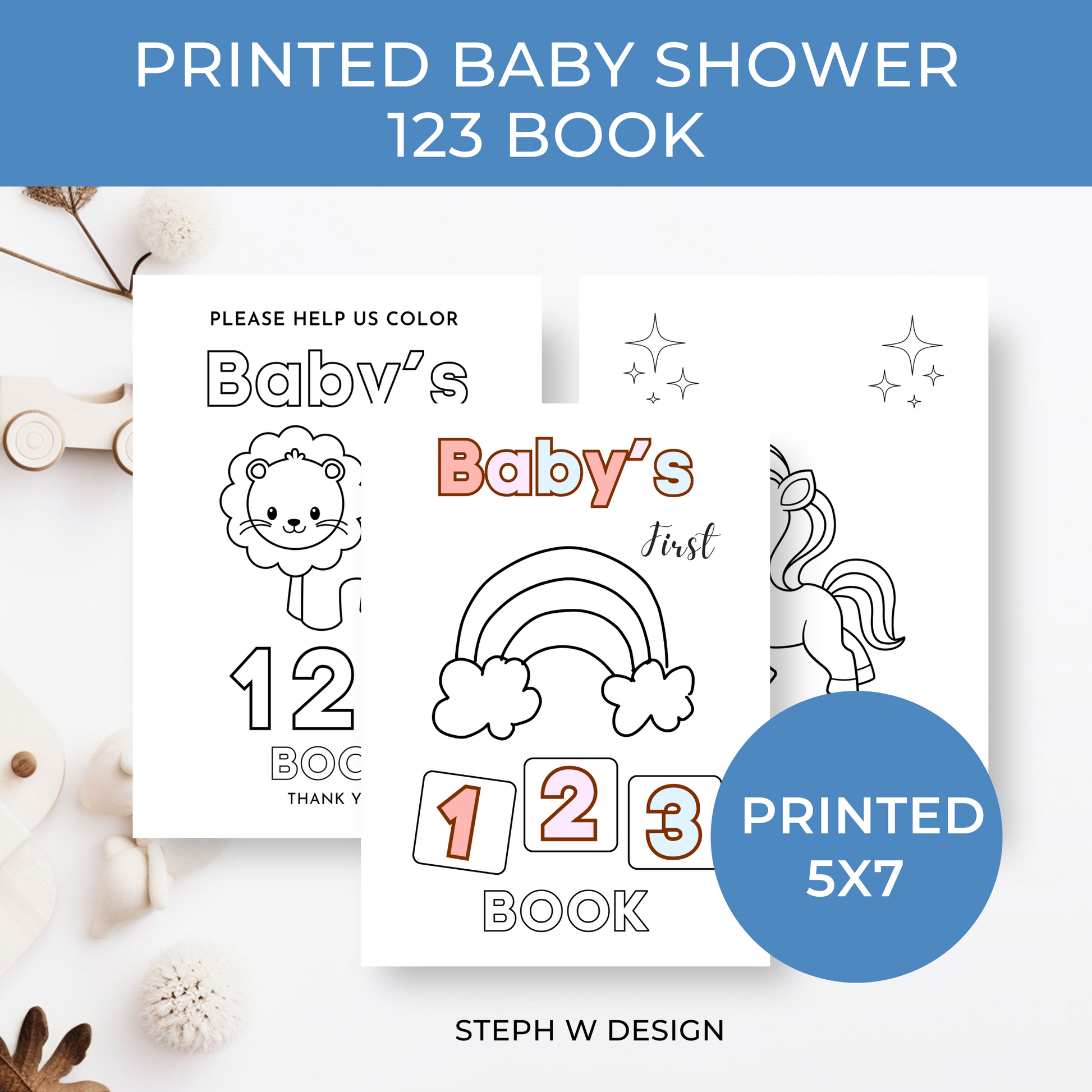Baby Shower ABC & 123 Book Coloring Activity - Printed 5x7" Bundle